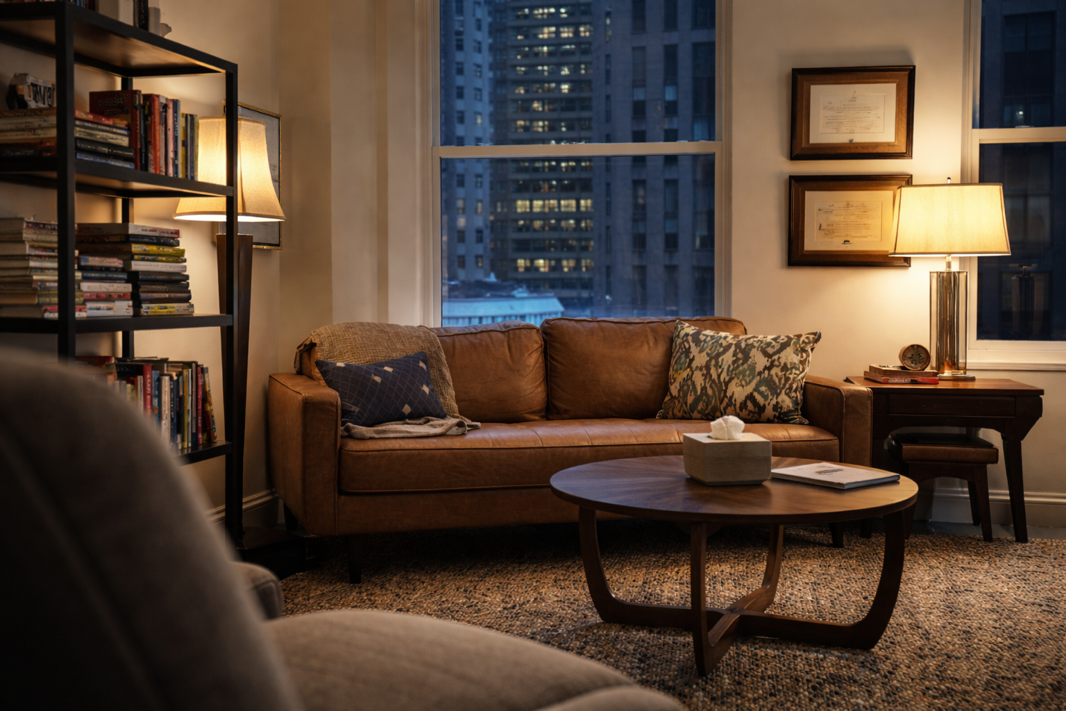A boutique Chicago office designed for clarity and comfort. Sessions are private, grounding, and focused on sharp insight that helps you move forward with meaningful change.